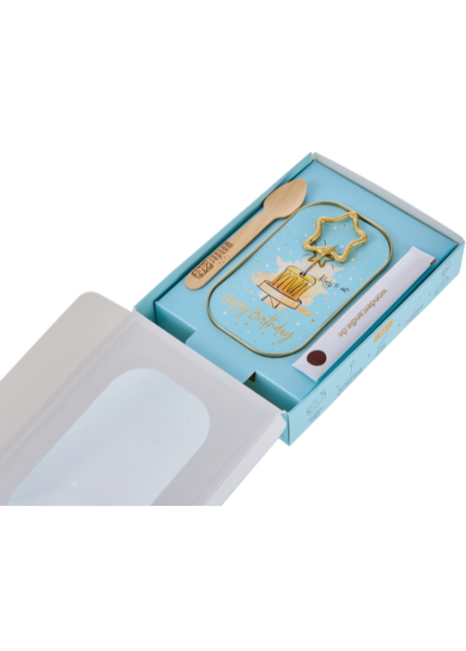 Einfach nur die Dose öffnen – Wondercandle® mini in den Kuchen stecken – anzünden – das Strahlen genießen – auslöffeln.